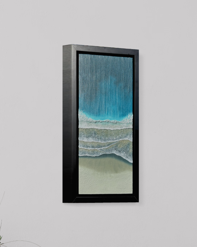 Mixed Media Ocean sculptural painting made with plaster and acrylic on cradled wood panel.