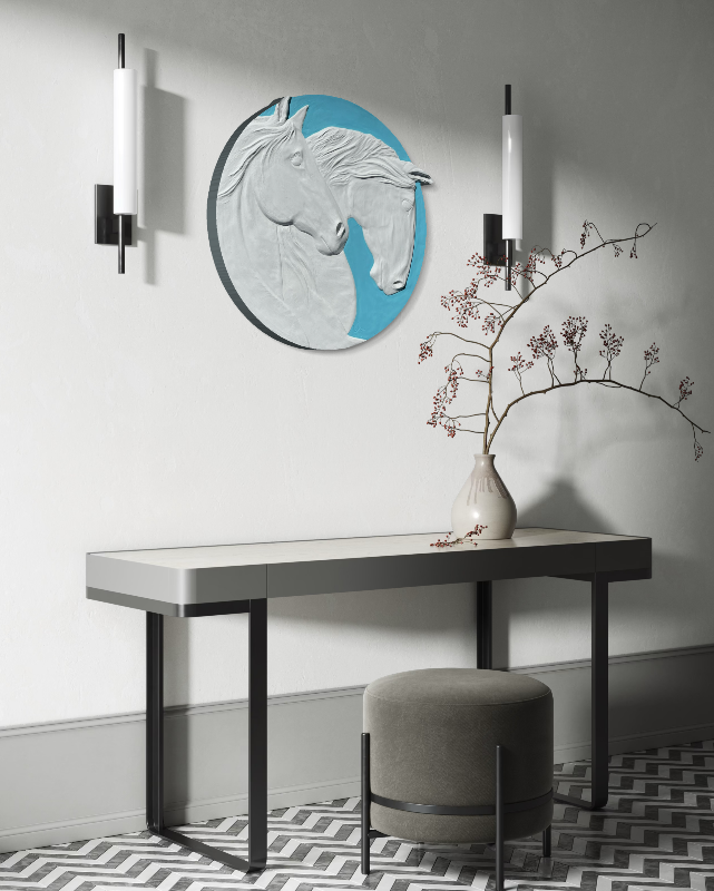 Bas Relief on wood panel made with plaster and acrylics.