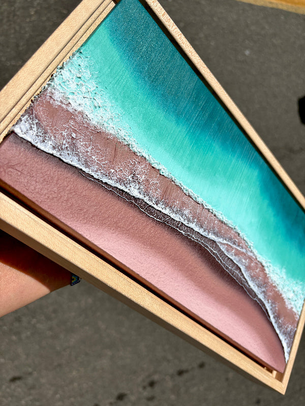 Mixed Media Ocean sculptural painting made with plaster and acrylic on cradled wood panel.