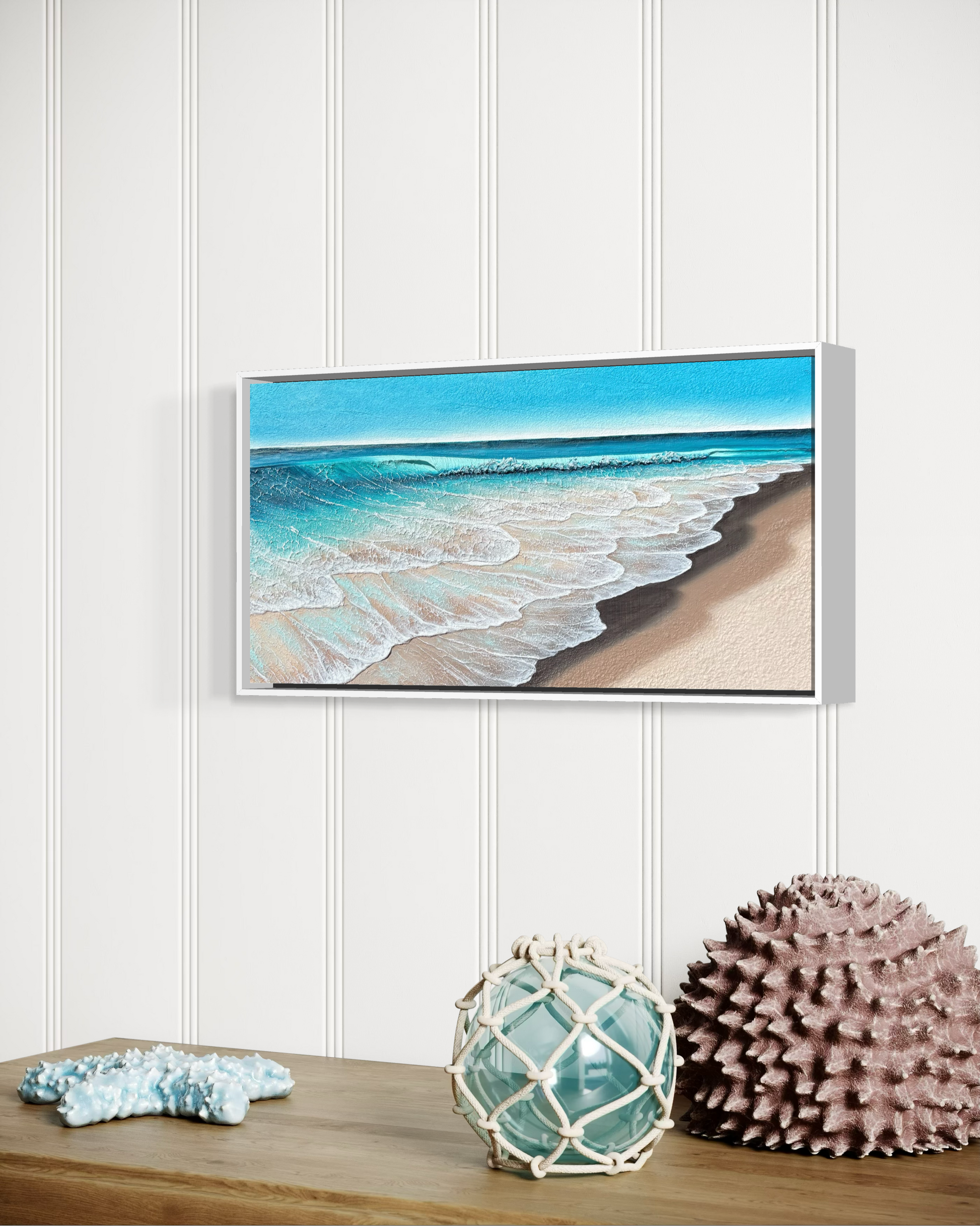 Mixed Media Ocean sculptural painting made with plaster and acrylic on cradled wood panel.