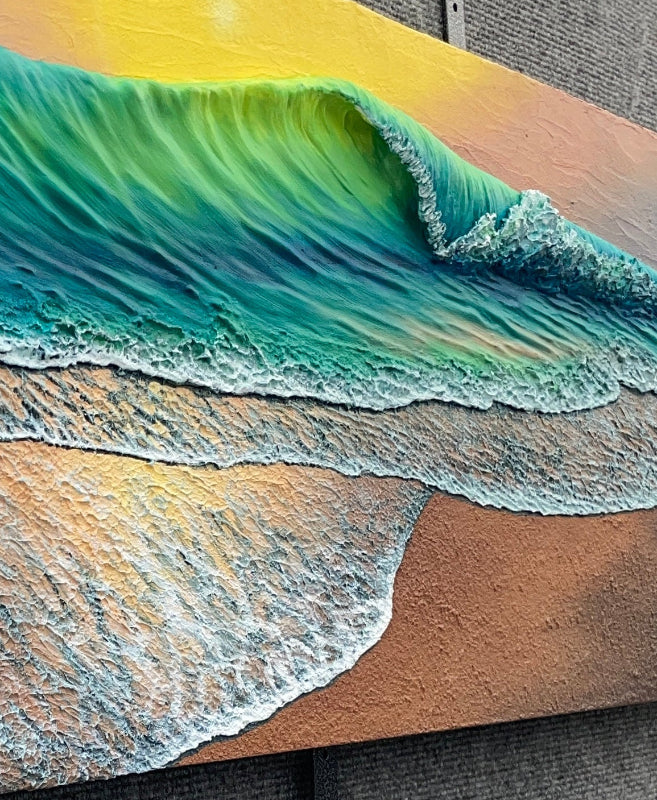 Mixed Media Ocean sculptural painting made with plaster and acrylic on cradled wood panel.