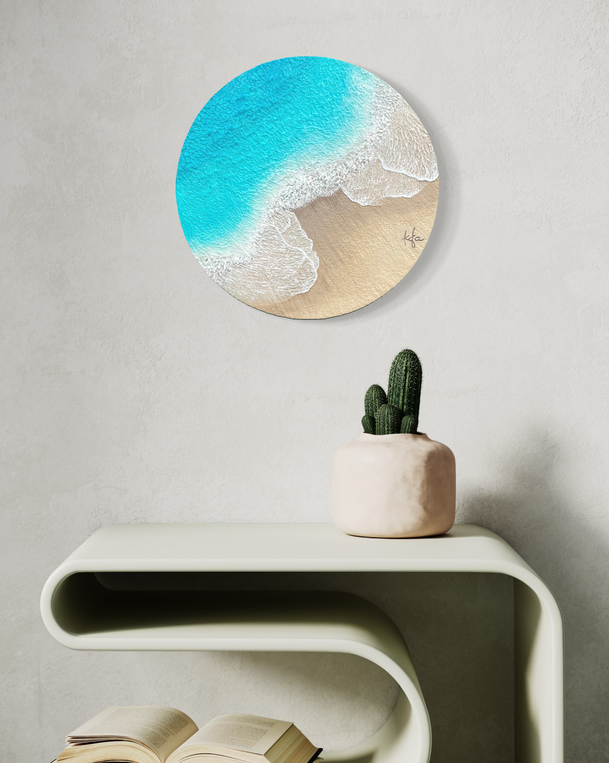 Mixed Media Ocean Painting made with plaster and acrylic on cradled wood panel.
