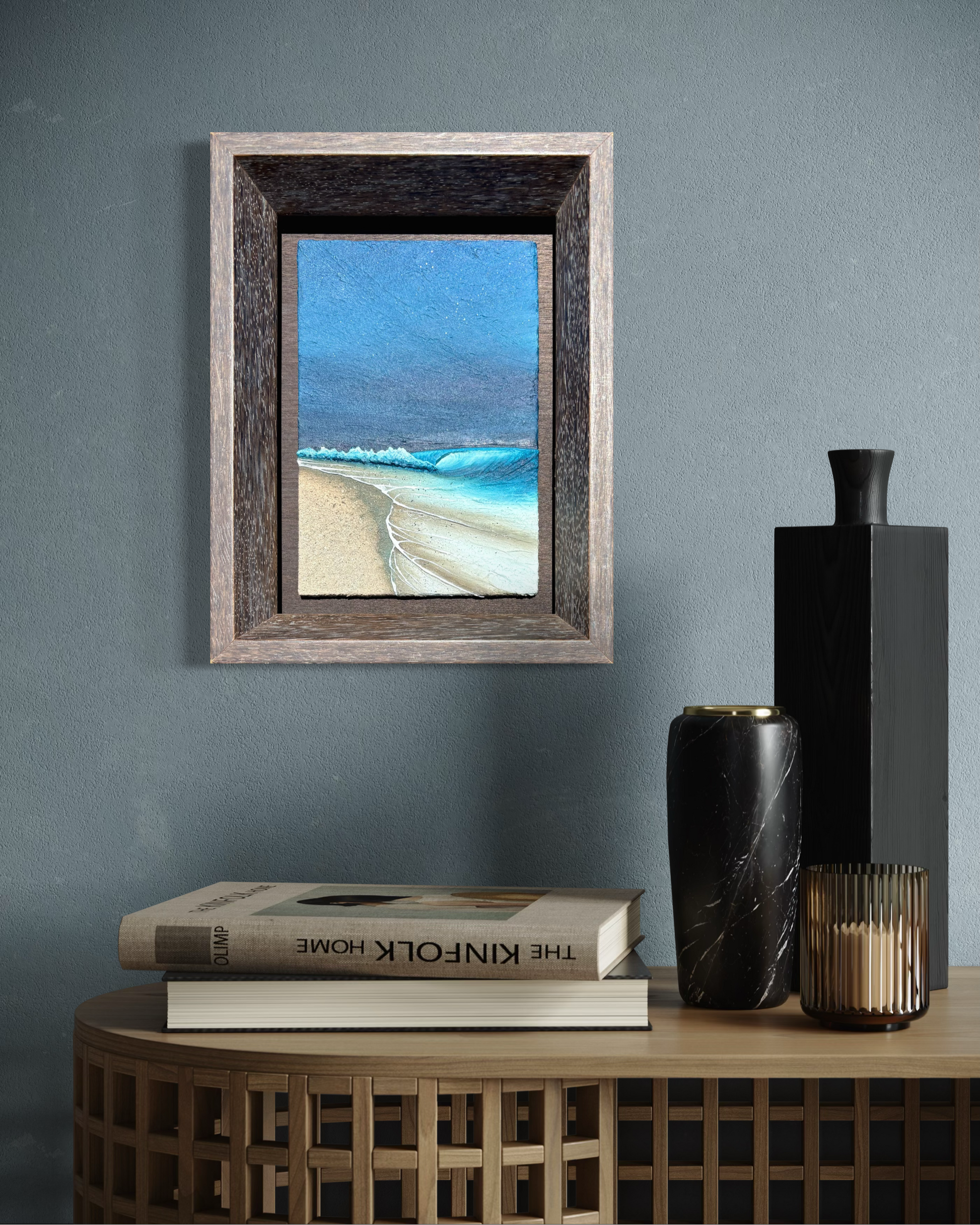 Mixed Media Ocean sculptural painting made with plaster and acrylic on cradled wood panel.