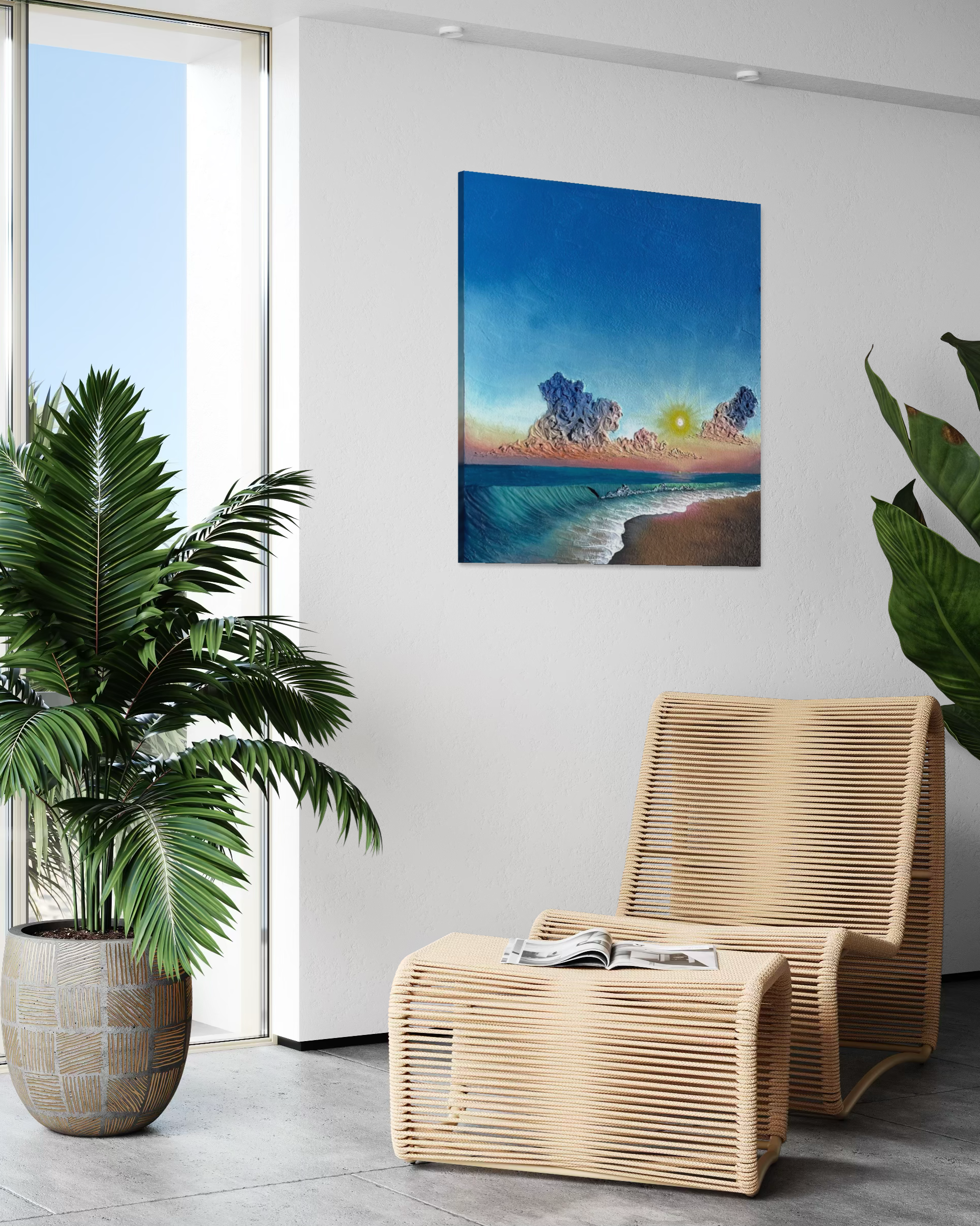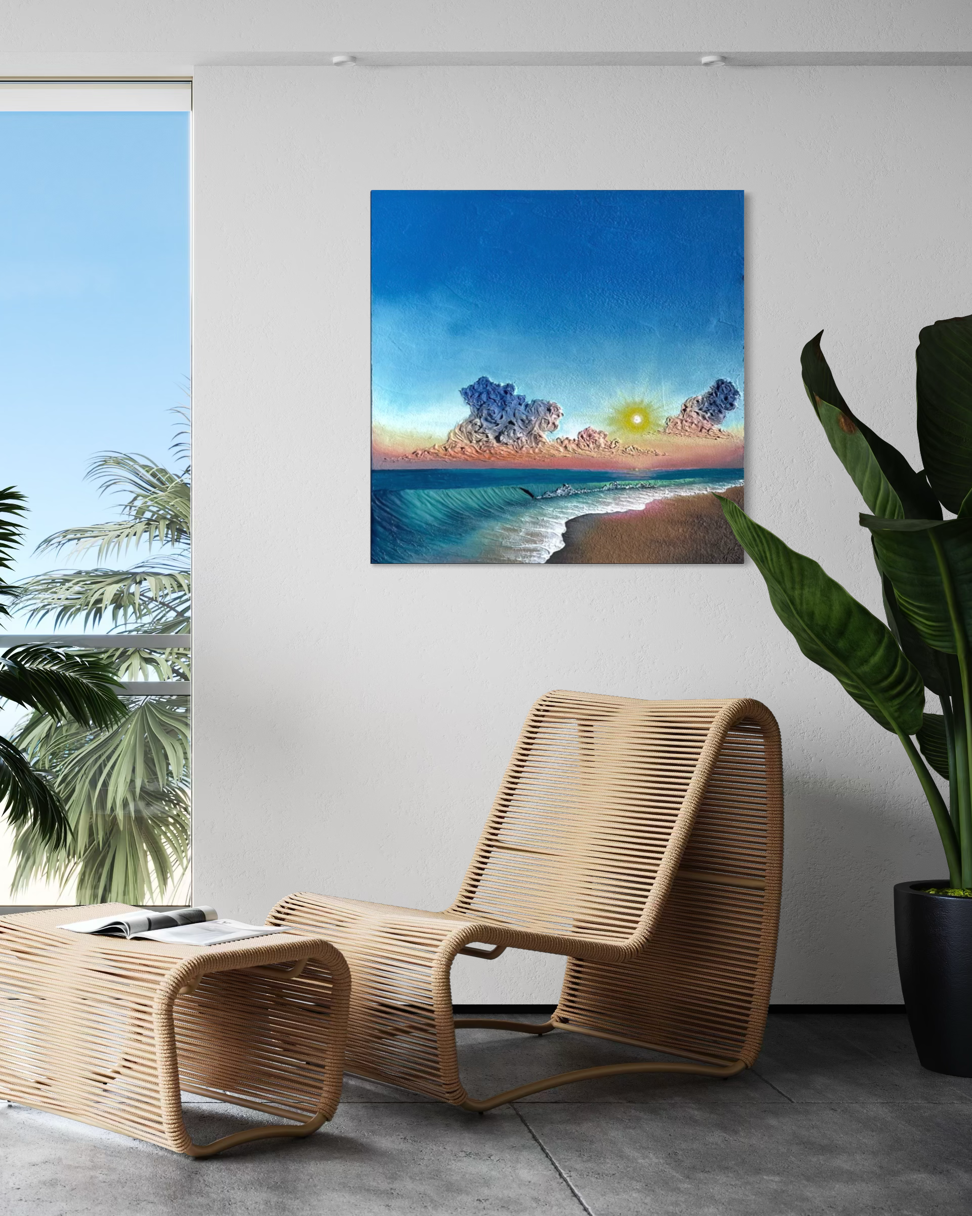 Mixed Media Ocean sculptural painting made with plaster and acrylic on cradled wood panel.
